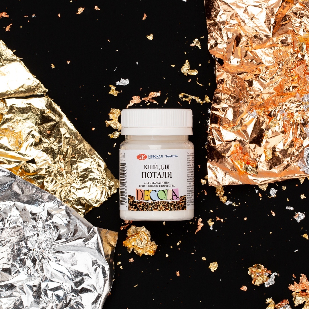 Предназначен для декора твердых поверхностей из дерева, картона, пластика, стекла и металла.Наносится тонким слоем на очищенную поверхность синтетической кистью. Приступать к золочению рекомендуется через 30 минут после нанесения, когда клей станет прозрачным, сохраняя длительный отлип. Далее на поверхность переносится поталь с помощью кисти. Излишки потали удаляются сухой мягкой кистью.