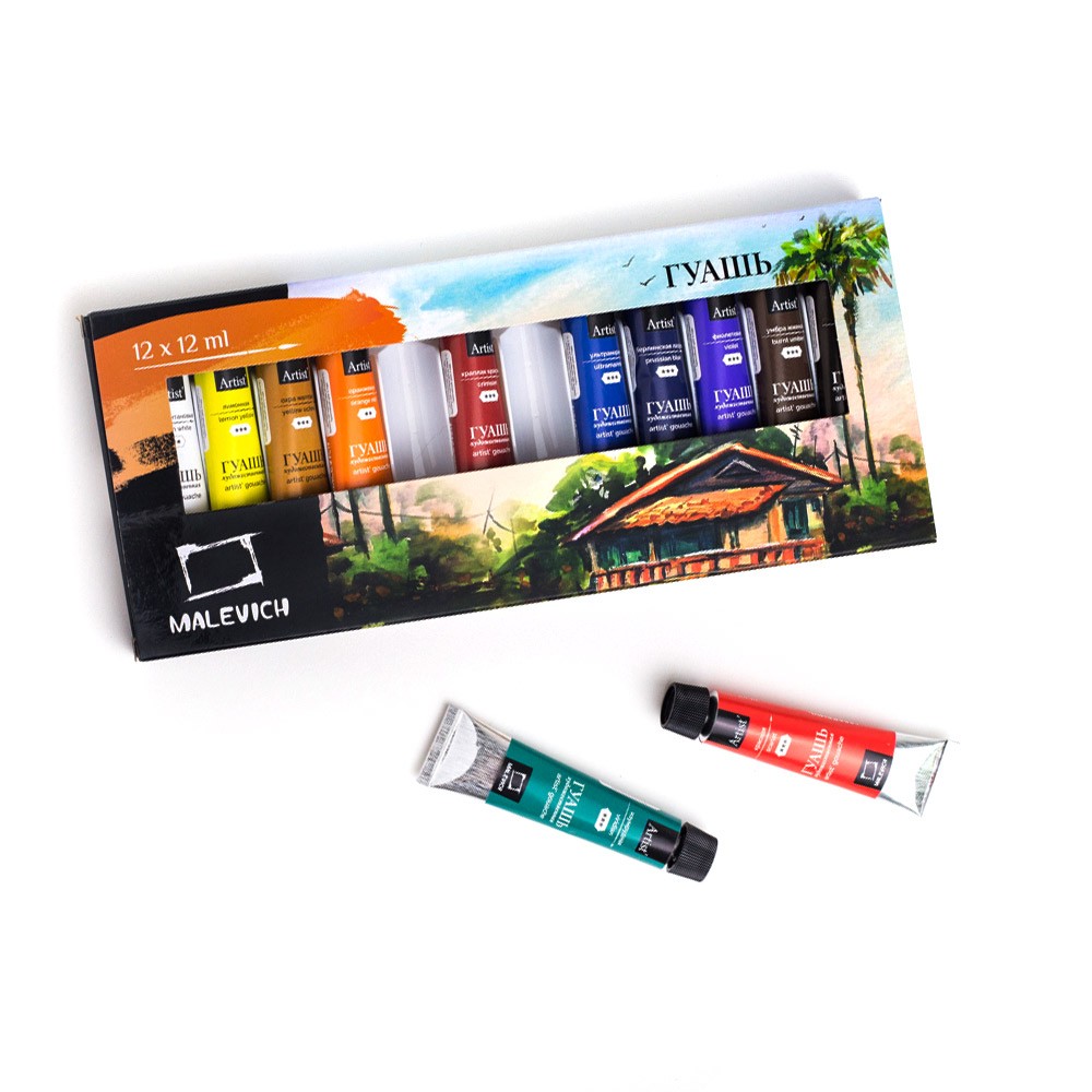 Набор гуаши от компании "Малевичъ" это - прекрасный подарок и начинающему, и опытному художнику. Небольшой объем баночек с краской удобен для выездов на этюды. Краски упакованы в красивую коробку.