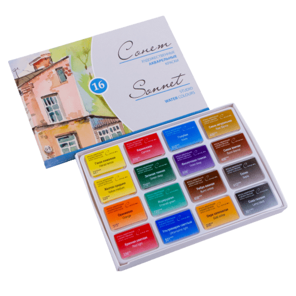 Используя акварельные краски «Сонет», начинающие художники имеют возможность получить ценный опыт живописи. Прозрачные чистые цвета линейки станут прекрасным выбором для создания дебютных акварельных работ.